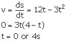 d/dt (6t - 6t2 ) = 6 - 12 t =0
