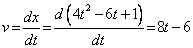 When t1 = 2s, v1 = 4(2)2 + 7 = 23 cm/s