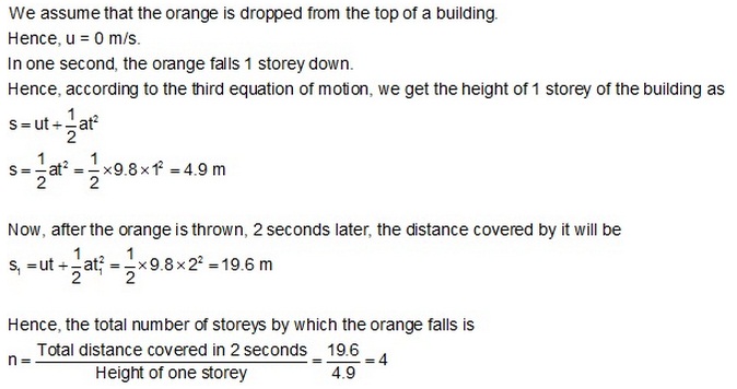 Q25. An orange is dropped from a building. One second after dropping the orange, it falls one storey. Two seconds after the orange is dropped, how many stories has it fallen?