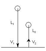If v2 is the velocity of the ball just after rebound at the ground, then we have after the rebound of the ball