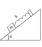 Q10. Draw a free body diagram of a block of mass m attached to a spring of constant k on a rough incline at angle θ.