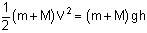 mv = (m + M) V ------- (2) Where V is the velocity of block and bullet after the impact.