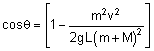 Q19. A bullet of mass m moving with a horizontal velocity v strikes a stationary block of mass M suspended by a string of length L. The bullet gets embedded in the block. What is the maximum angle made by the string after the impact?