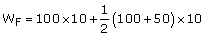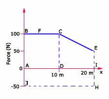 0). We are given that the frictional force f=50 N. It opposes motion and acts in a direction opposite to F. It is therefore shown on the negative side of the force axis.The work done by the woman is WF = area of the rectangle ABCD + area of the trapezium CEID.